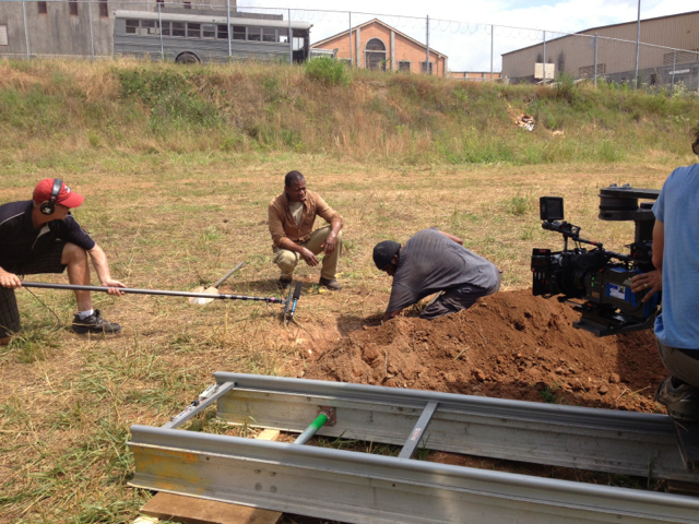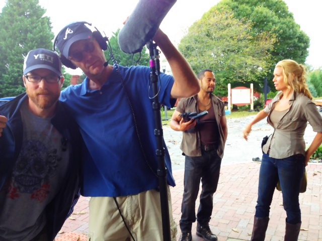A normal day of camera work on The Walking Dead involves custom made dollies under beds, steadicam walk and talks through the woods, cameras in trunks, multiple dolly track moves, simultaneous crane shots with distant ground placements, Go Pros, DSLR’s, below ground positions, and long custom made sliders amongst vines, trees, and steep hills. This kind of work tells you a lot about the environments we work in, and the type of formidable moves that have to be worked around. Remember, radio mics are our friends, but they don’t always solve the problem, so my handy boom pole has to be up and ready to go in a split second’s notice. The delightful part of working on The Walking Dead is the pest repellant that we use. Yes, there’s nothing like a morning buzz. It stings a little at first, but boy does it do it’s job. It repels everything and everyone, but we have to do it because the alternative is to be eaten alive….by bugs. Whether it’s chiggers, ticks, mosquitos, or spiders…we waste no time, least they waste us for days. Sometimes, before we even arrive on set, we drench our bare legs, arms, necks, and mid-sections with a not-so-healthy dose of DEET. It only takes a hardy gathering of swollen red volcanos around your ankles and groin area before you become a convert too. We don’t like it, but it beats itching your skin for days on end until your flesh comes off. Ahhh, the glamour of Hollywood.IMG_0776 Despite all of the odds, discomforts, and long days in rural Georgia, we manage to get great sound. I’ve never witnessed a department that brings so much to the table as Michael Clark and Dennis Sanborn do. As arduous as recording sound is on The Walking Dead, these guys step up to the challenge of working on one of the most difficult shows in television. They face it head- on with persistence and determination. They execute the work with grace and good attitudes. Perhaps it’s the fact that it’s the number one show on television, perhaps it’s our own personal challenges, the truth is, we all get up every morning knowing that it’s going to be another tough day. We also know we’re not going to be facing adversity alone, we’re going to have our team, we’re going to have our well oiled comrades around us…and we’re going to be with our friends. There’s nothing more bonding than working on a show like this, a show that makes you better. Isn’t that what it’s all about….getting better, working as a team, and working with friends. The Walking Dead is a tough show, but that’s what makes it great!
