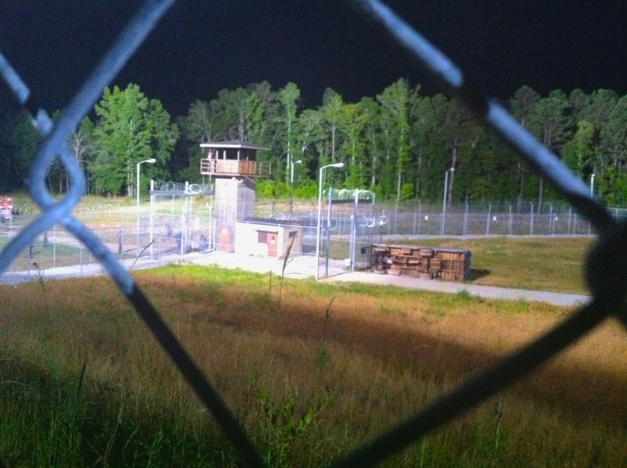 The sun provides it’s own little challenge. Because we work in remote locations, and because of the time constraints in which we operate, Fly Swatters (20 x 20 diffusion frames rigged onto an overhead condor), are not used. No diffusion available. Imagine the logistics and time involved to get a Fly Swatter a quarter of a mile out onto a rural railroad track. Yep, we do little-to-no diffusing of the sunlight. This complicates booming, and requires that we use two booms in a tricky, shadow plagued effort to get dialog when the radios mics just are not up to our standards. We do our best, but many times we just can’t get the incidental angle that we’d like. And speaking of the sun, anyone remember that line from David Lynch’s ’Wild at Heart’, with Laura Dern and Nicholas Cage, “You’re as hot as Georgia asphalt”? I do, every time I wring out my shirt in the middle of a sweltering summer scorcher. Georgia is hot, sweltering hot with singing cicadas, croaking frogs, and stinging sun burns on the back of your neck. That’s when we shoot, straight through the day….all day. Yes, we bring along EZ Up canopies, but where I work next to the cameras, there’s no canopy, just a couple of shared umbrellas. It’s a great way to get to know people. Prison at Night thru ChainThe way in which the show is photographed always makes for a tall task. I remember shooting Episode 405, “Internment”. The director, David Boyd, who is one of the former DP’s on the show, believes in a gorilla filmmaking style which incorporates multiple cameras in obscure positions. The episode takes place mostly in the prison cells, with Herschel (Scott Wilson” tending to the near death patients, particularly Glenn (Steven Yuen). Now, in reality these cells are only 10 feet by 10 feet wide, with a bunk bed on one side. So, it was common to shoot entire scenes in these cells with three cameras, two operators, and three actors. When possible, there was me. And ‘me’ needed to be there, because they, the actors, had blood on their chests, air masks in their faces, and crumpled up clothing to boot. Typically I would be sitting or standing on the upper bunk bed, or smashed up against a wall with an operator. Always, I was inches from the talent. These same cells were apart of our biggest acoustic challenges. Although they were prison cells, and thus wanted to sound like prison cells, they were really made of wood. And they sounded like…wood. We employed furniture pads on the walls, and acoustic tiles in the corners when they wouldn’t be seen, but many times we couldn’t. Fortunately the reverberant effects that post production added, fixed the problem, and made for some very interesting character effects to the scene.
